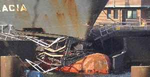 die „Akacia“ das Tor und kam mit seinem Rumpf zum Teil auf diesem zu liegen.