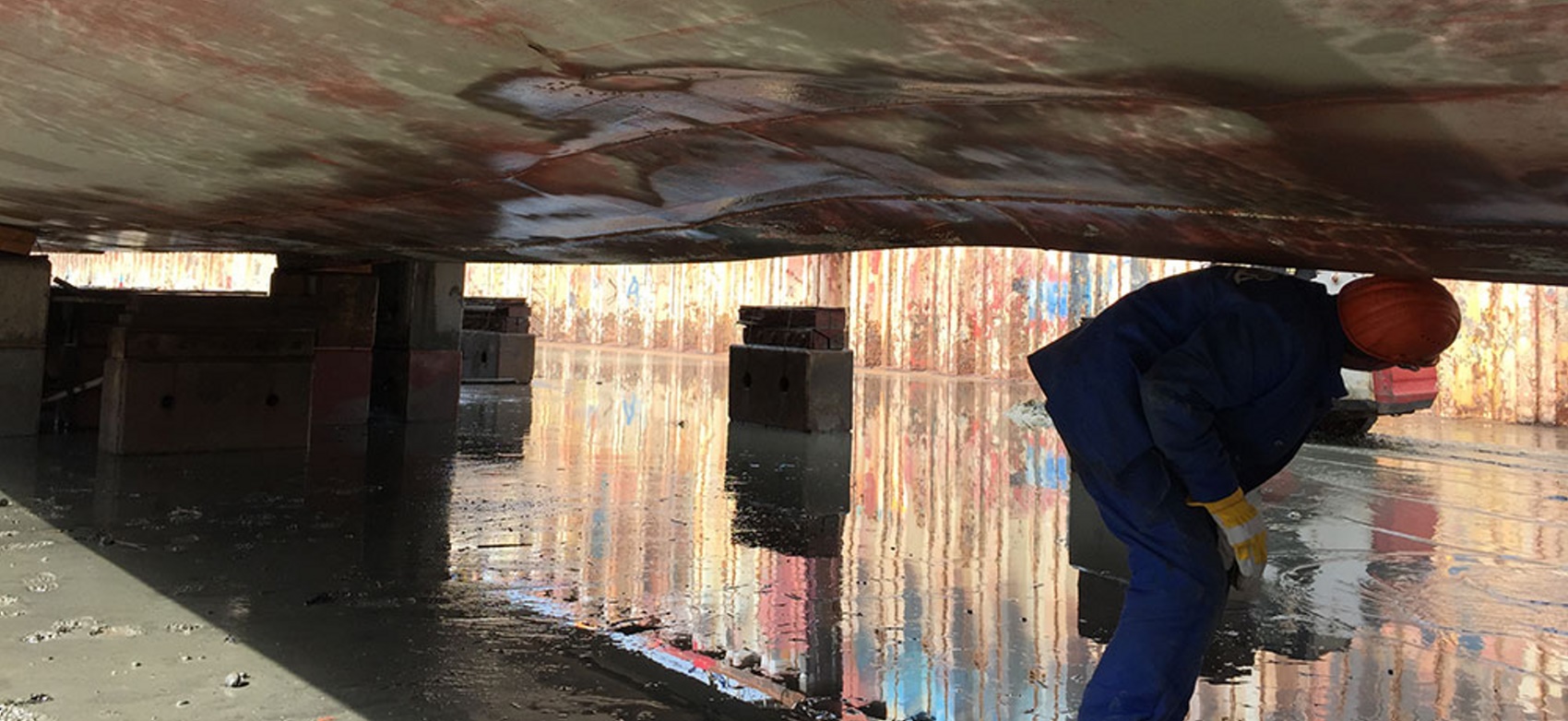 Kammer ab, um die Schäden unter Wasser zu inspizieren. Wann das Schiff