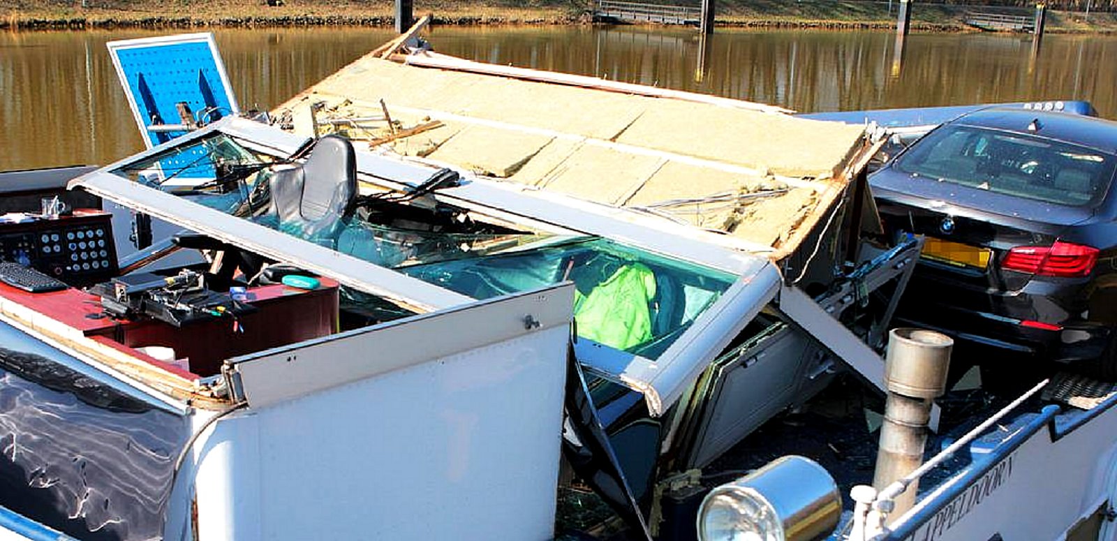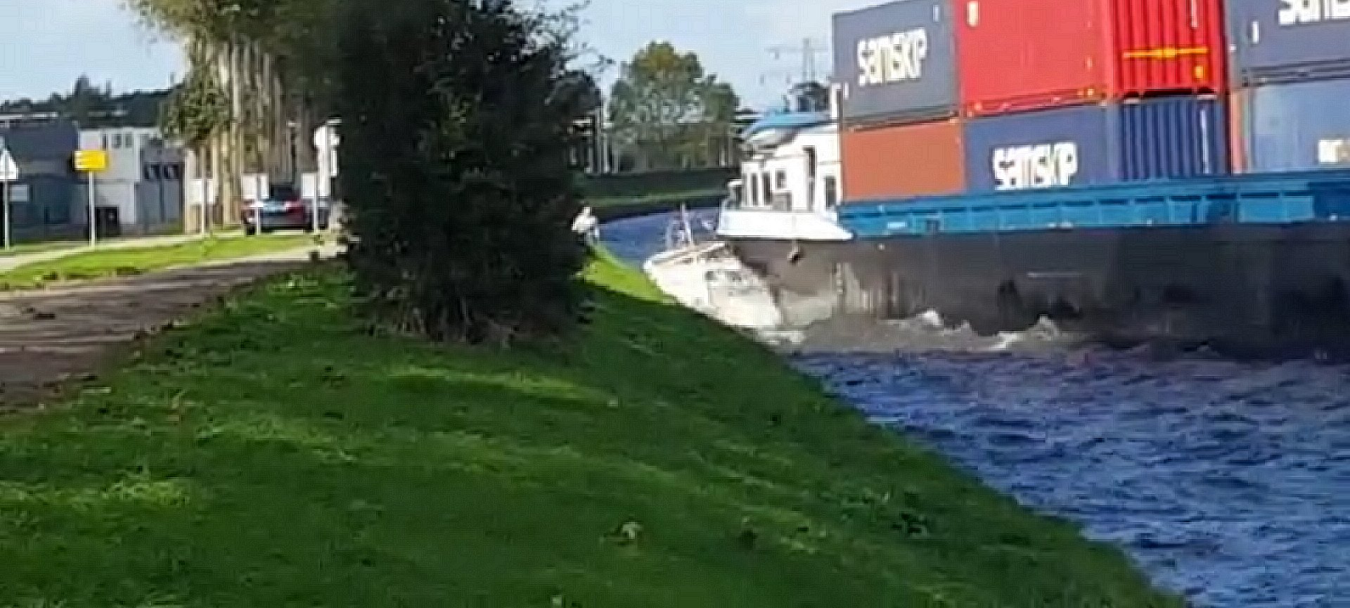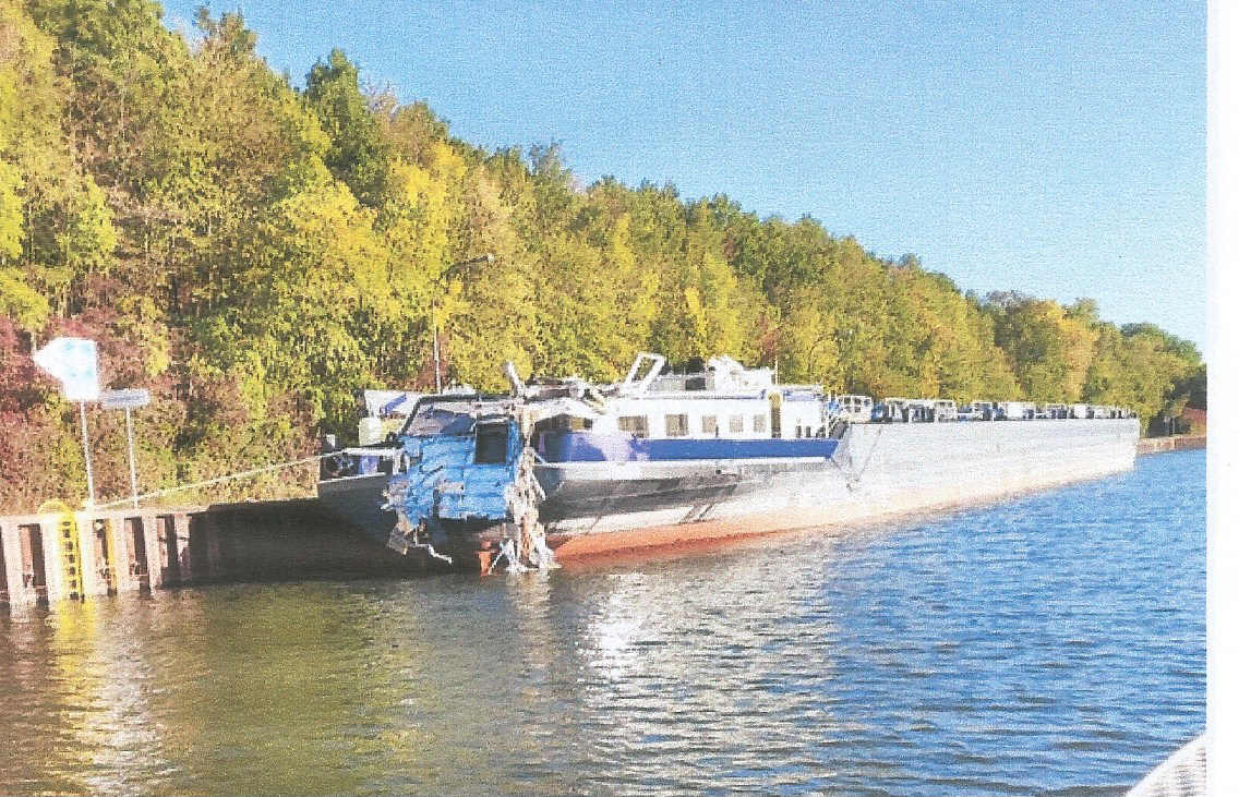 zu viel Fahrt in die Schleuse ein. Es rammte das Tor mit rund 10 Knoten